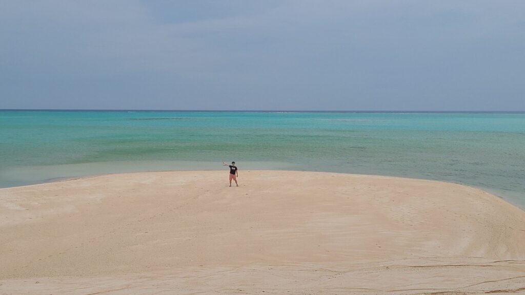 与論島の観光地で有名な「百合ヶ浜」よりもレアな大金久海岸に現れる浜辺も見ることが出来ました。