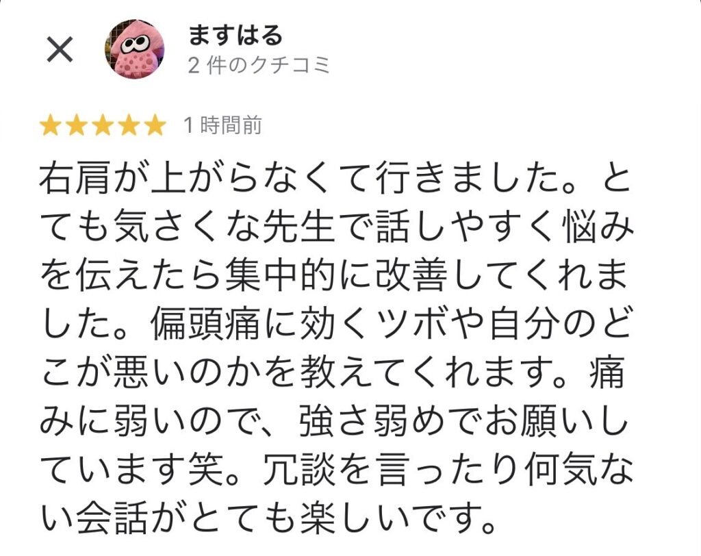 とても気さくな先生で話しやすく、悩みを伝えたら集中的に改善してくれました。
