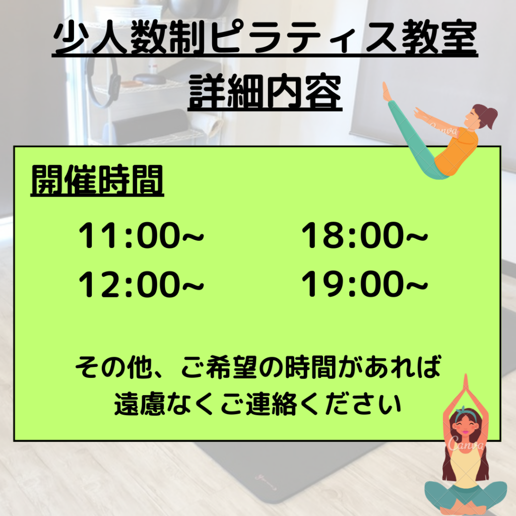 また、当店では毎週水曜日に少人数制ピラティス教室を開催しております。