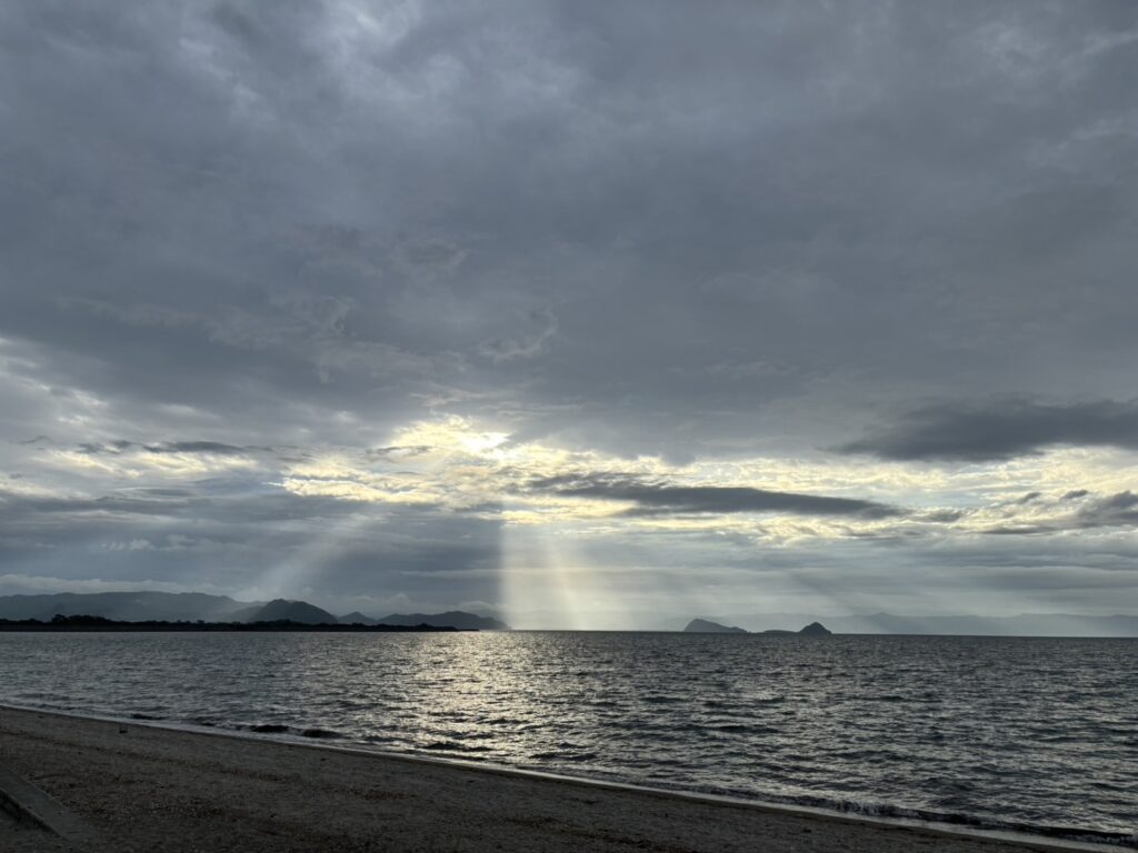 朝は、朝日が神々しい感じがしてご利益がありそうな空からのスタートです。