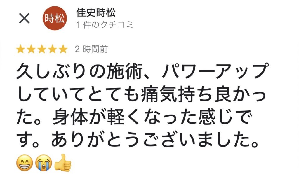 久しぶりの施術、パワーアップしていてとても痛気持ち良かった。