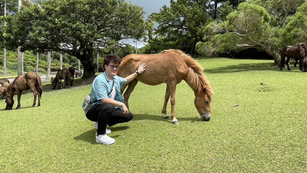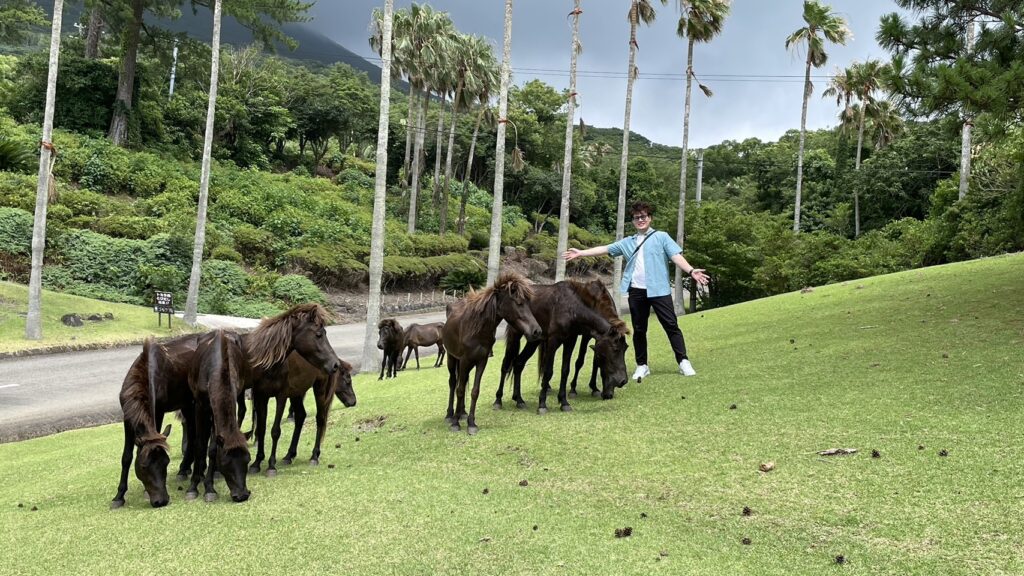 到着していきなり、トカラ馬がお出迎えしてくれたので興奮が止まらず