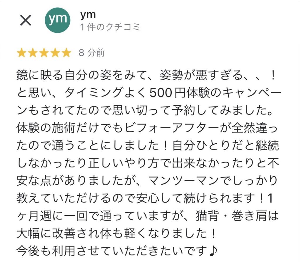 1ヶ月週に一回で通っていますが、猫背・巻き肩は大幅に改善され体も軽くなりました!