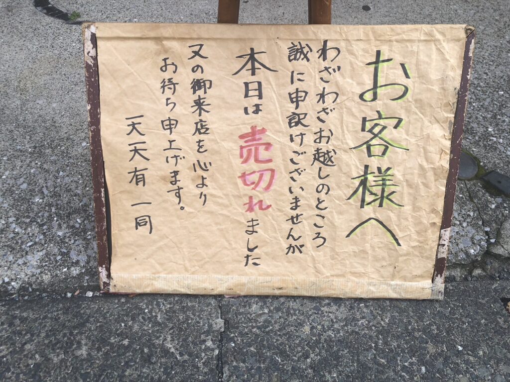 最近のお店はメニューも豊富な中、天天有はシンプルメニューで完売!