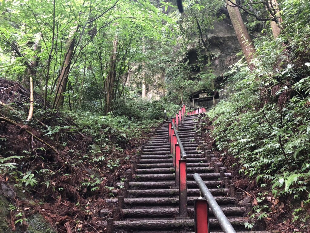 熊襲の穴までは、そこそこ急な階段を登って行くのですが