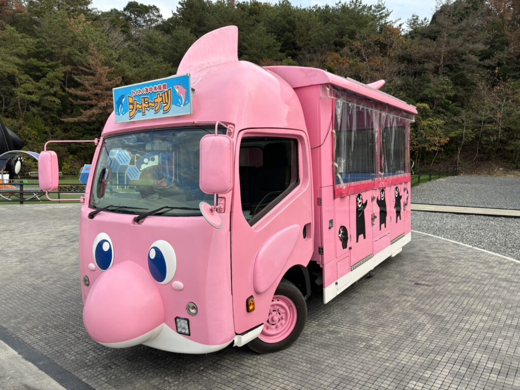 可愛いイルカの送迎バスがありますので、歩くのがしんどい人も心配なし!(笑)