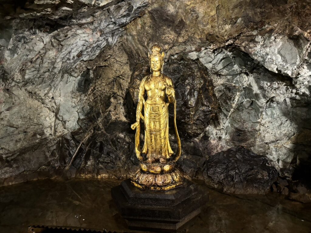 鉱山で働く人達の安全と繁栄を願って作られた黄金の観音像
