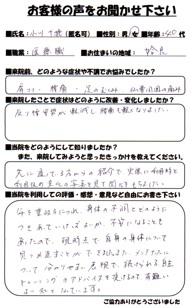 先に通っている方からの紹介で来院されました。