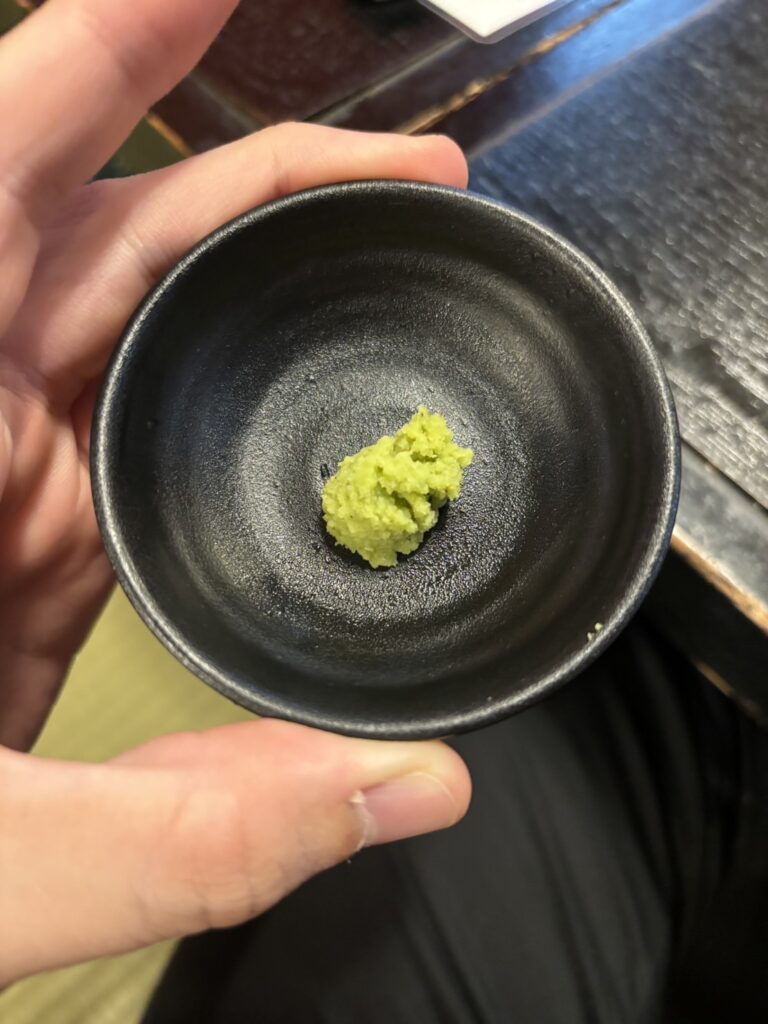 ワサビを入れても。ワサビの風味はするけど辛みを感じないのでワサビが苦手な人でも食べれます。