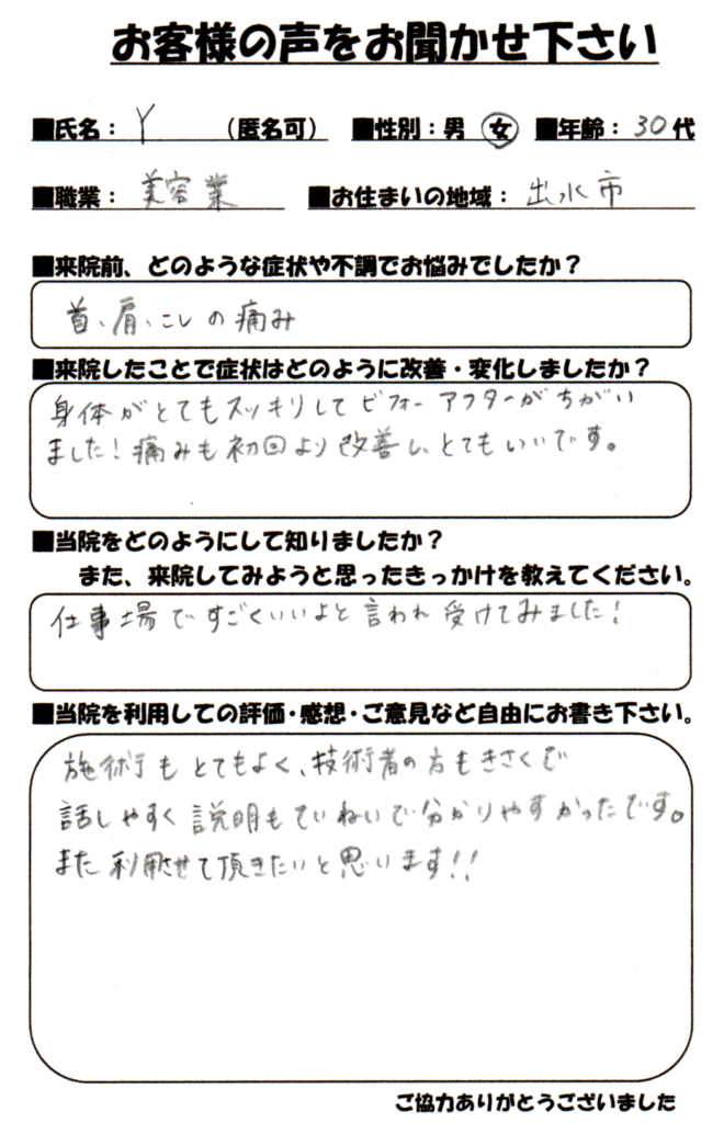 職場の方に凄く良いよとおススメされて姶良市のこちらの整体院に伺いました。