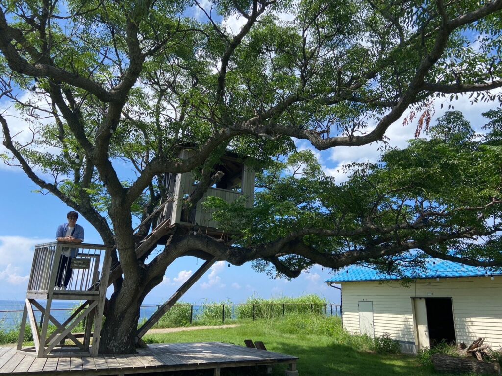 学校のシンボル的な木には、ツリーハウスが設置されております。