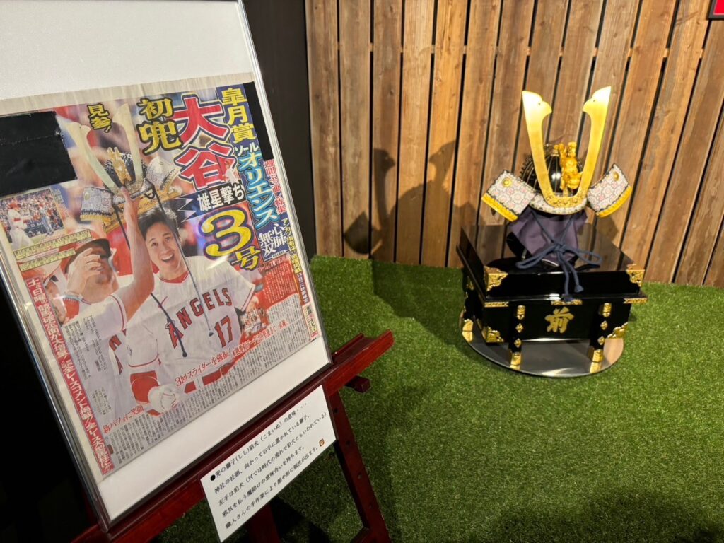常に話題沸騰の大谷翔平選手が実際に被った兜が展示されています。