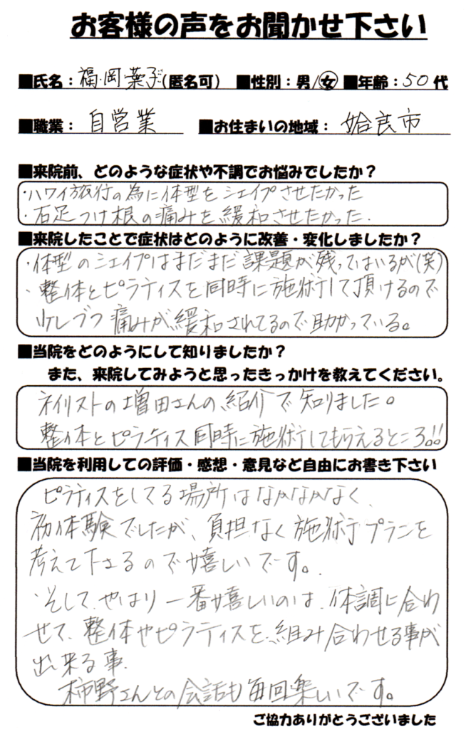体調に合わせて整体やピラティスを組み合わせることができること。