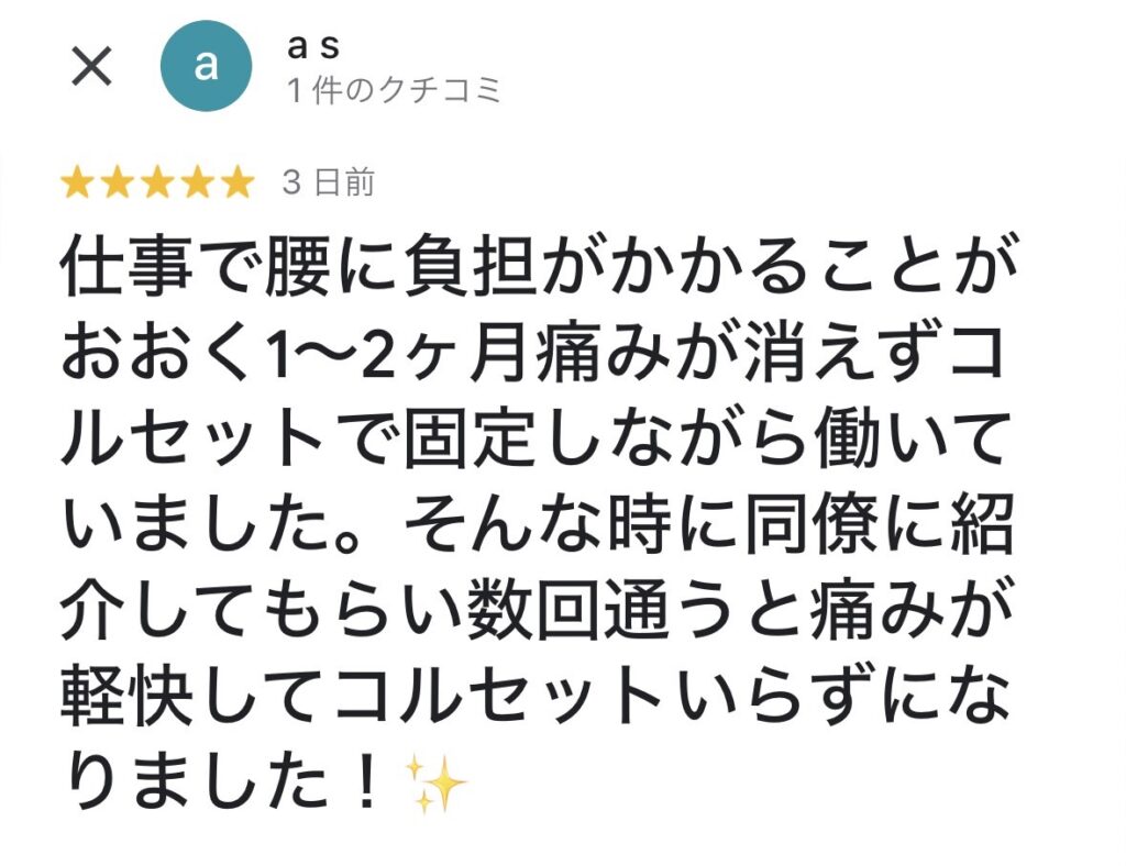 数回通うと痛みが軽快してコルセットいらずになりました!✨