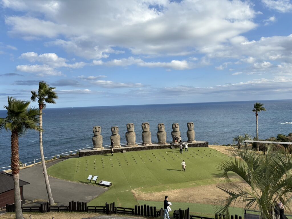 上から見てもモアイ像の存在感と景色が美しくてが何とも言えません。