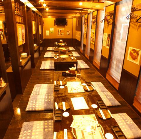 座敷のお席はすだれで区切って少人数、広々と全て使って宴会に、